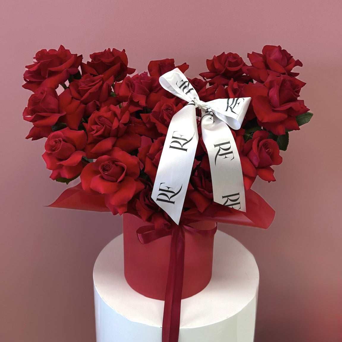 Red Luxury Box with French roses—an elegant presentation of premium blooms arranged in a sophisticated gift box. Perfect for anniversaries, romantic gestures, or celebrating special moments.